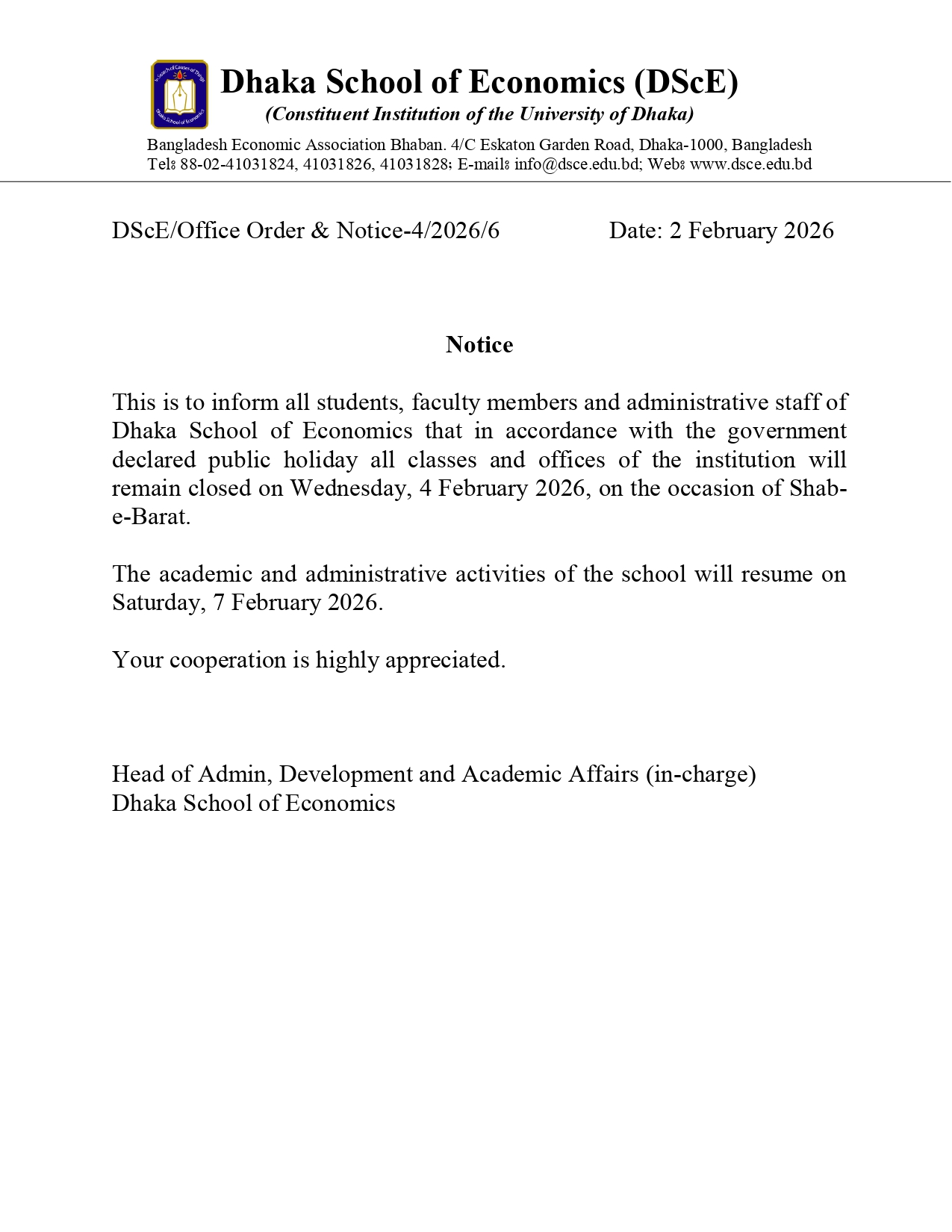 Holiday – Shab-e-Barat 2026